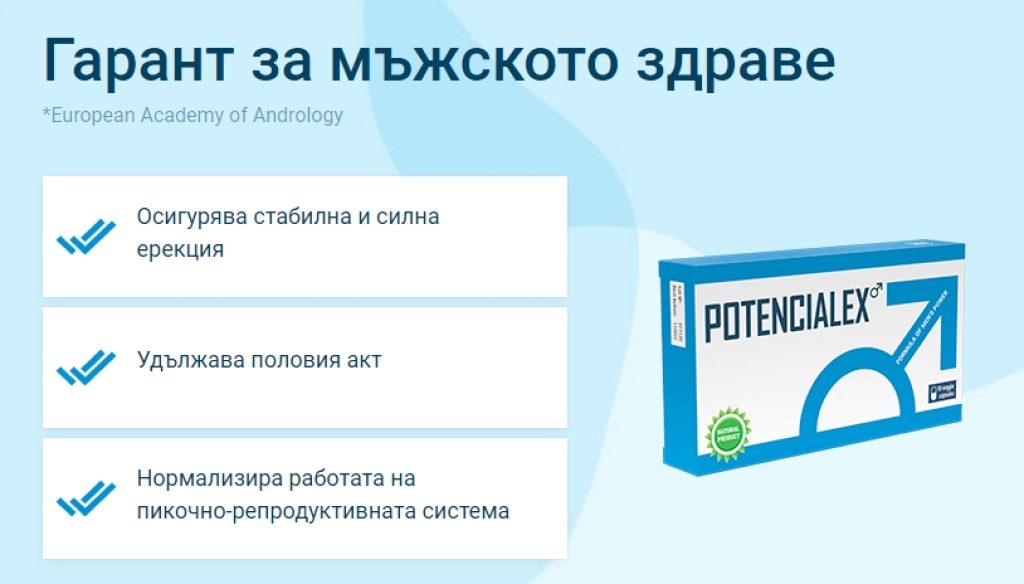 Добрата новина за вас е, че вече има продукт на пазара, който може да подобри цялостно вашето сексуално представяне. Това е истинският Potencialex, който е естествено и ефикасно средство с мелиоративно действие върху ерекцията на човека. В този файл ще ви разкажем повече за него: Какво представлява Potencialex, къде да го закупите, как да приемате тези хапчета и колко дълго.